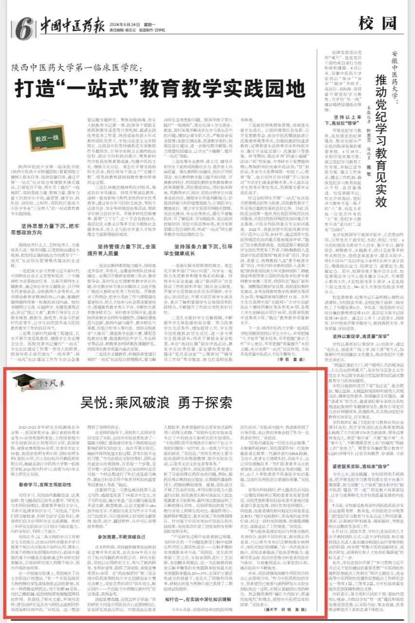 中国中医药报、中国中医药网:吴悦:乘风破浪 勇于探索