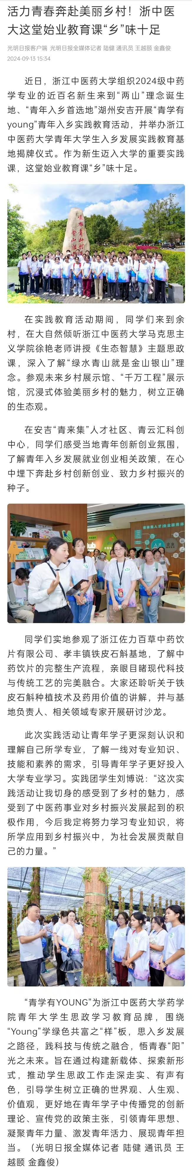 光明日报:活力青春奔赴美丽乡村!浙中医大这堂始业教育课“乡”味十足