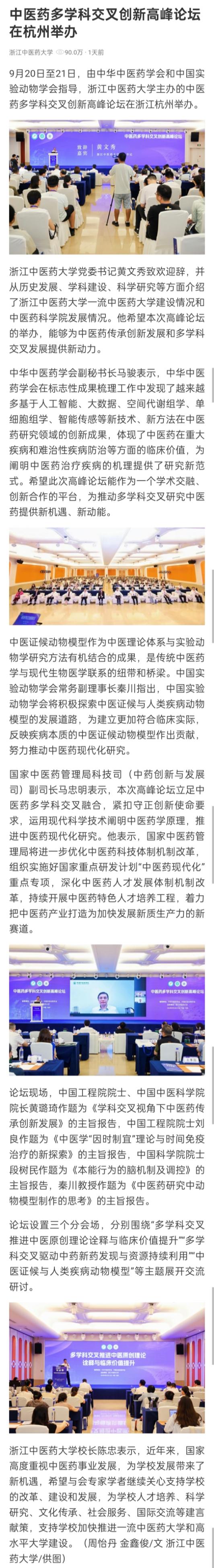 9月20日至21日,由中华中医药学会和中国实验动物学会指导,久久精品一区二区三区四区主办的中医药多学科交叉创新高峰论坛在浙江杭州举办。