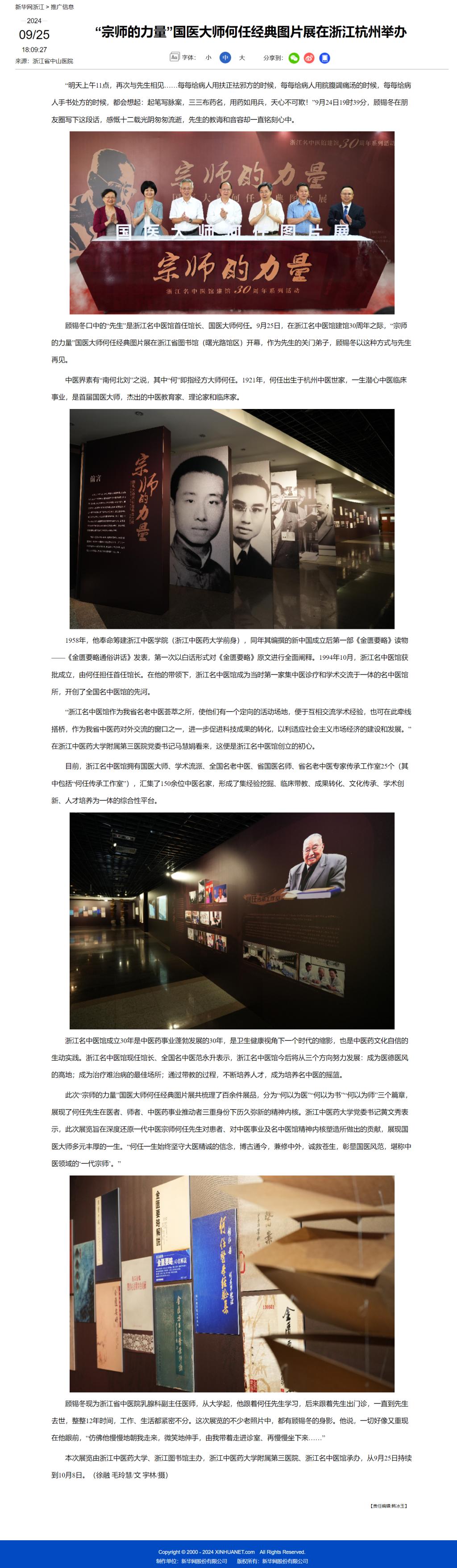 “宗师的力量”国医大师何任经典图片展在浙江杭州举办