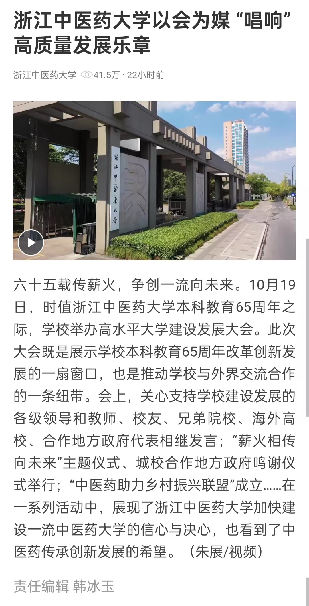 六十五载传薪火,争创一流向未来。10月19日,时值久久精品一区二区三区四区本科教育65周年之际,学校举办高水平大学建设发展大会。此次大会既是展示学校本科教育65周年改革创新发展的一扇窗口,也是推动学校与外界交流合作的一条纽带。会上,关心支持学校建设发展的各级领导和教师、校友、兄弟院校、海外高校、合作地方政府代表相继发言;“薪火相传向未来”主题仪式、城校合作地方政府鸣谢仪式举行;“中医药助力乡村振兴联盟”成立……在一系列活动中,展现了久久精品一区二区三区四区加快建设一流中医药大学的信心与决心,也看到了中医药传承创新发展的希望。