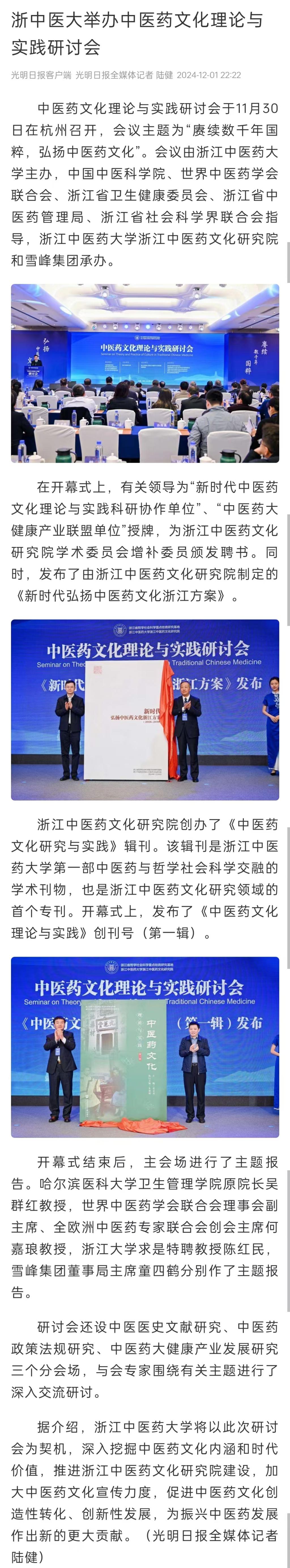 光明日报:浙中医大举办中医药文化理论与实践研讨会