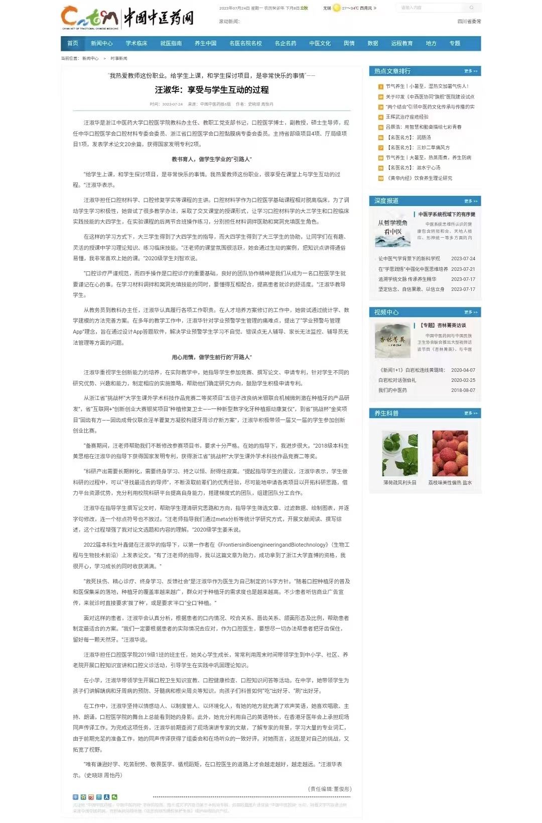 2022届本科生叶鑫健在汪淑华的指导下,以第一作者在《FrontiersinBioengineeringandBiotechnology》(生物工程与生物技术前沿)上发表论文。“有了汪老师的指导,我以这篇文章为助力,成功拿到了浙江大学直博的资格,我很开心,学习成长的同时收获满满。”