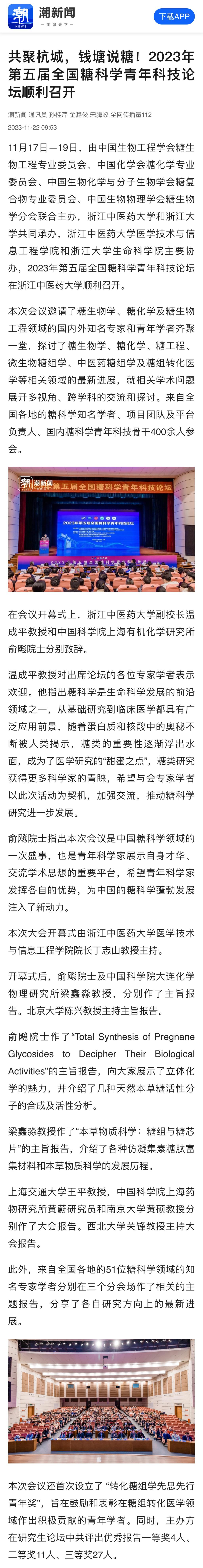 共聚杭城,钱塘说糖!2023年第五届全国糖科学青年科技论坛顺利召开