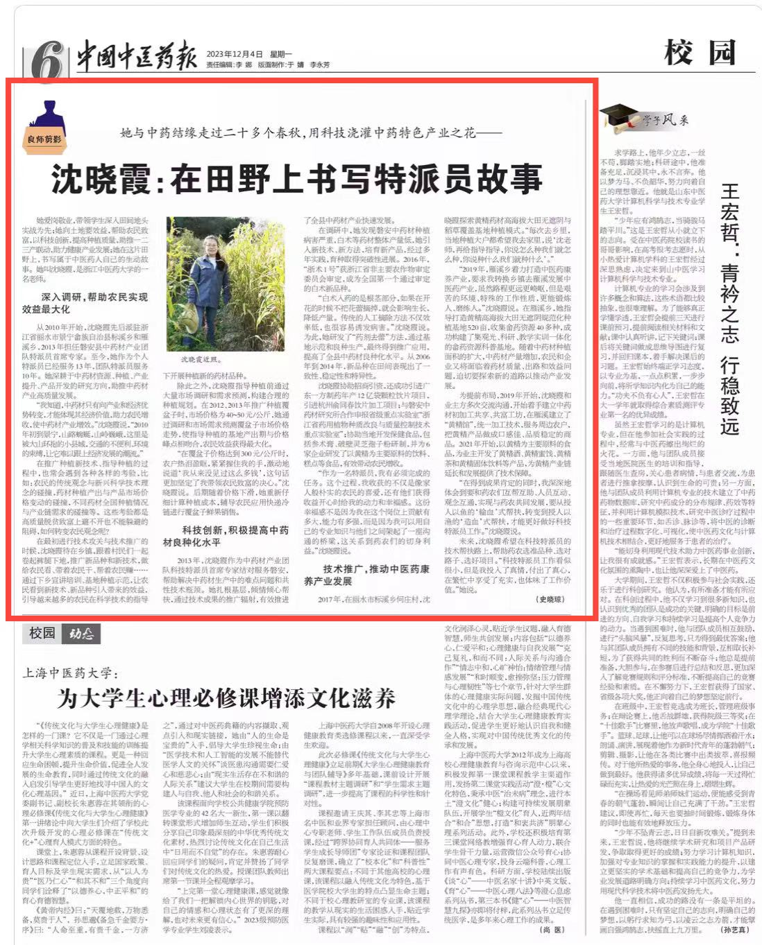 中国中医药报、中国中医药网:她与中药结缘走过二十多个春秋,用科技浇灌中药特色产业之花—— 沈晓霞:在田野上书写特派员故事