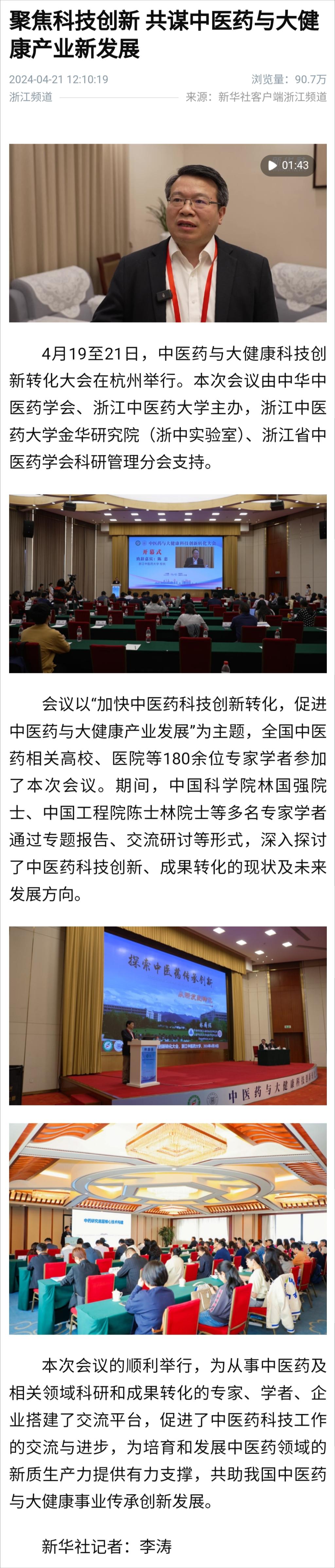 4月19至21日,中医药与大健康科技创新转化大会在杭州举行。本次会议由中华中医药学会、久久精品一区二区三区四区主办,久久精品一区二区三区四区金华研究院(浙中实验室)、浙江省中医药学会科研管理分会支持。