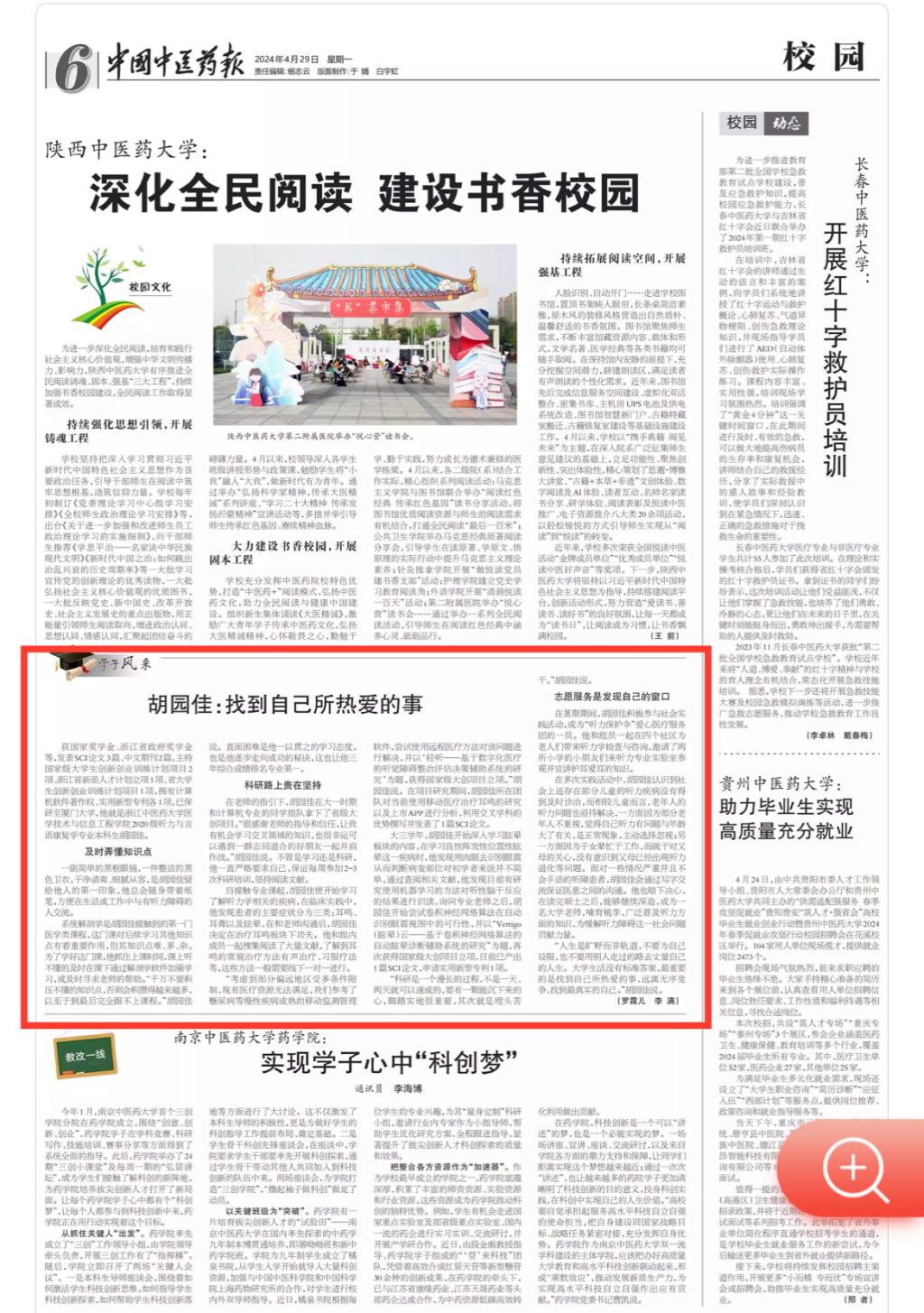 “人生是旷野而非轨道,不要为自己设限,也不要用别人走过的路去丈量自己的人生。大学生活没有标准答案,最重要的是找到自己所热爱的事,远离无序竞争,找到最真实的自己。”胡园佳说。