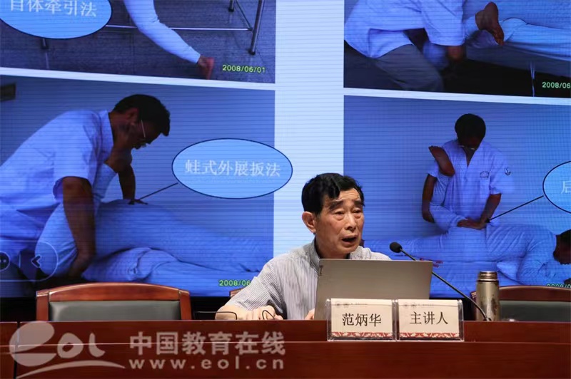 范炳华教授从事中医药教育工作50余年,创新“端口”教学法,在学习传承中医文化上具有丰富的经验。他通过分享“三部推拿法治疗眩晕技术”的诸多案例,告诉同学们学习的目的全在于应用,创新实干才是硬道理。